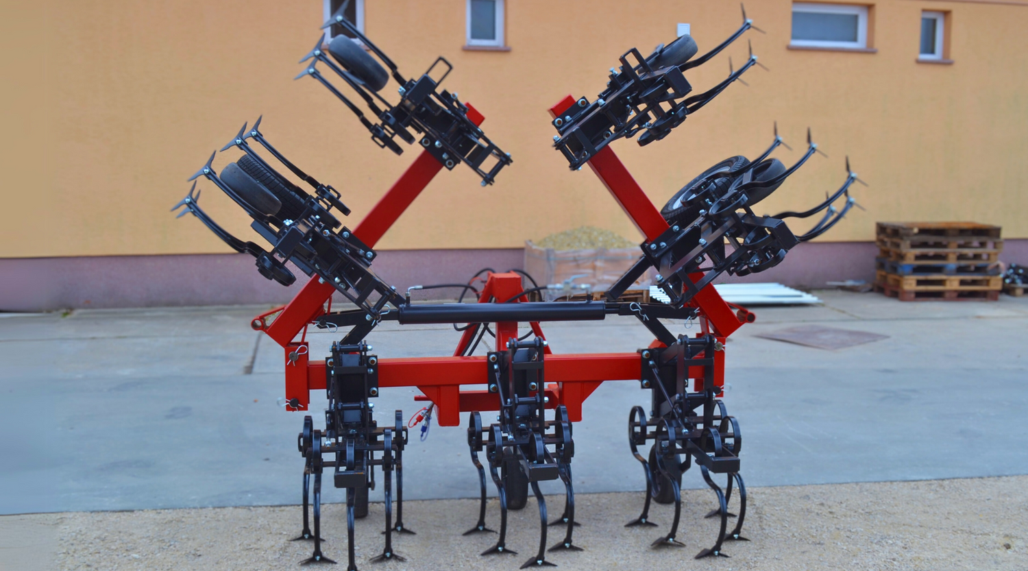 The Vineyard Cultivation Machine family enables efficient vineyard opening, covering, and pneumatic blowing. These machines facilitate weed removal between rows with low energy consumption, loosening compacted soil, and precise fertilization of vineyard rows.